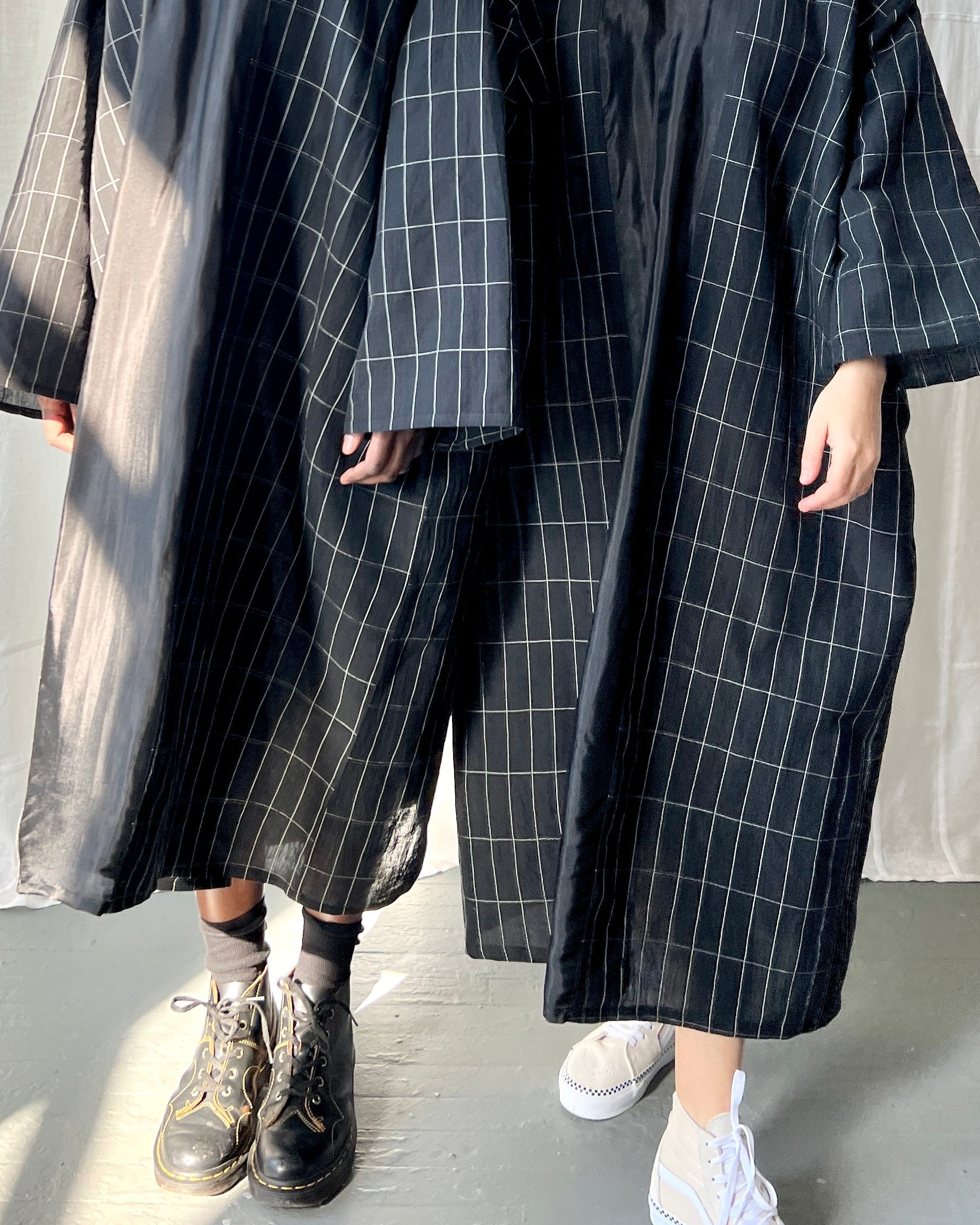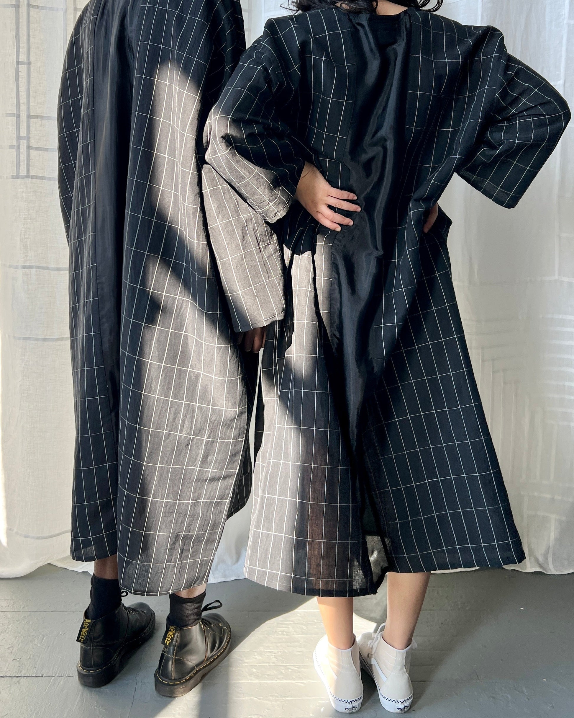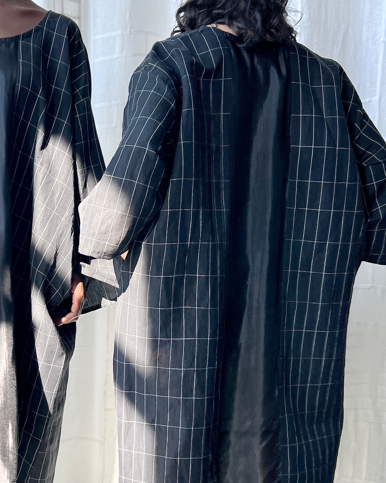 black grid linen and silk tunic