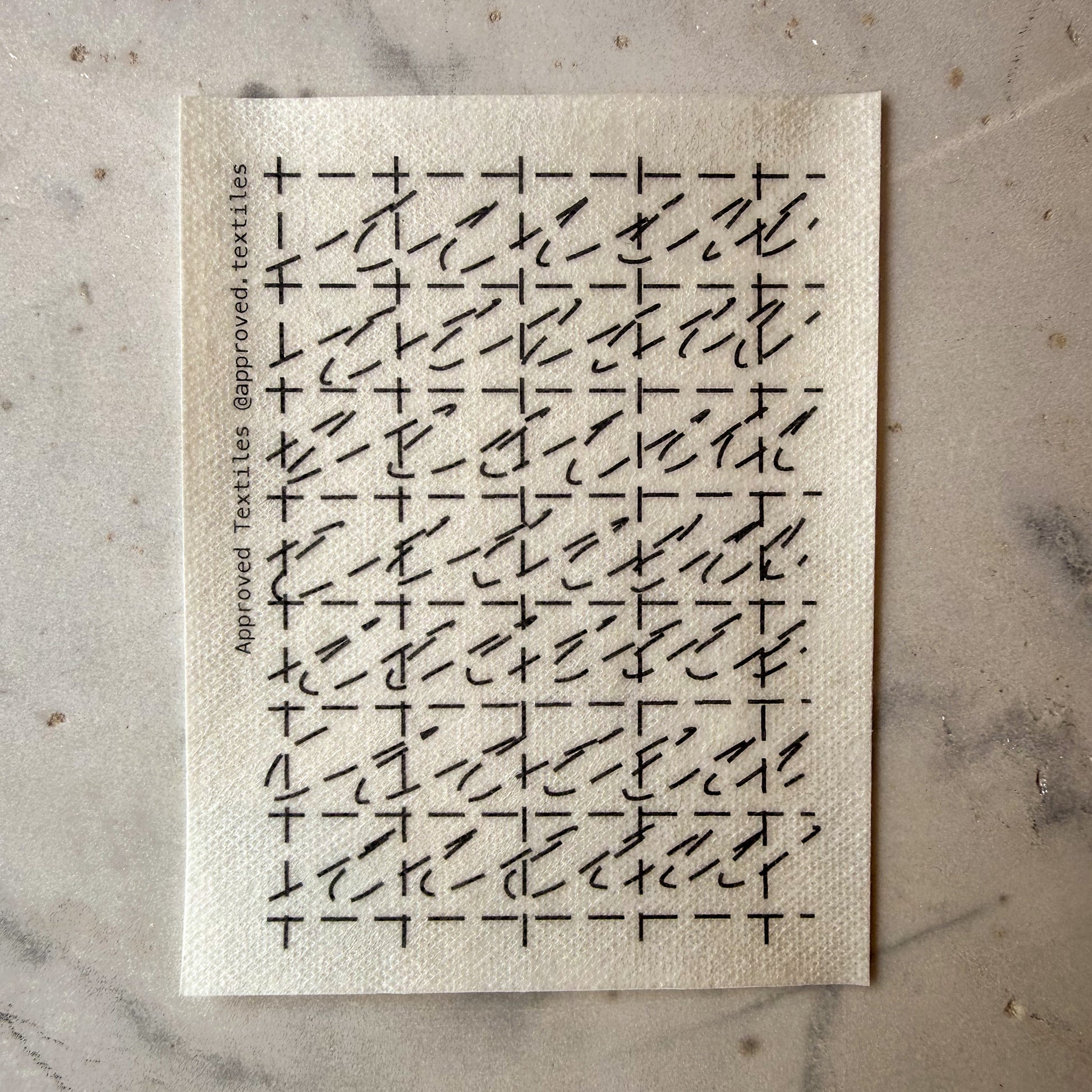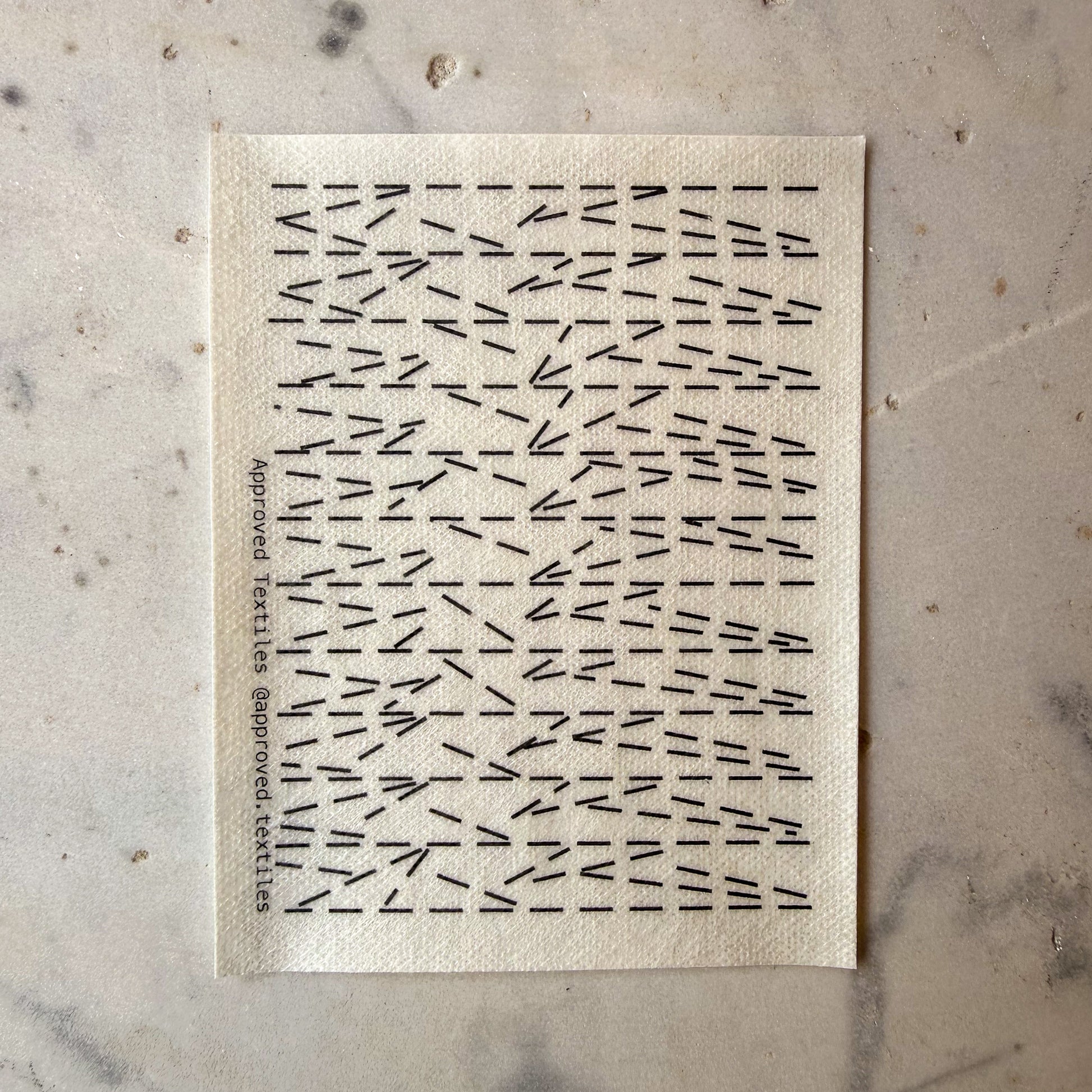 Hanne Darboven transformed numbers, dates, and time into intricate, repeating grids, showing that discipline and structure can create quiet poetry. Her work reminds us that repetition is not monotony—it is rhythm, accumulation, and care. This transfer set draws on her geometric logic to create mending designs that use repetition to reinforce fabric while adding visual texture. Each stitch becomes a deliberate act, turning repair into both practice and pattern.