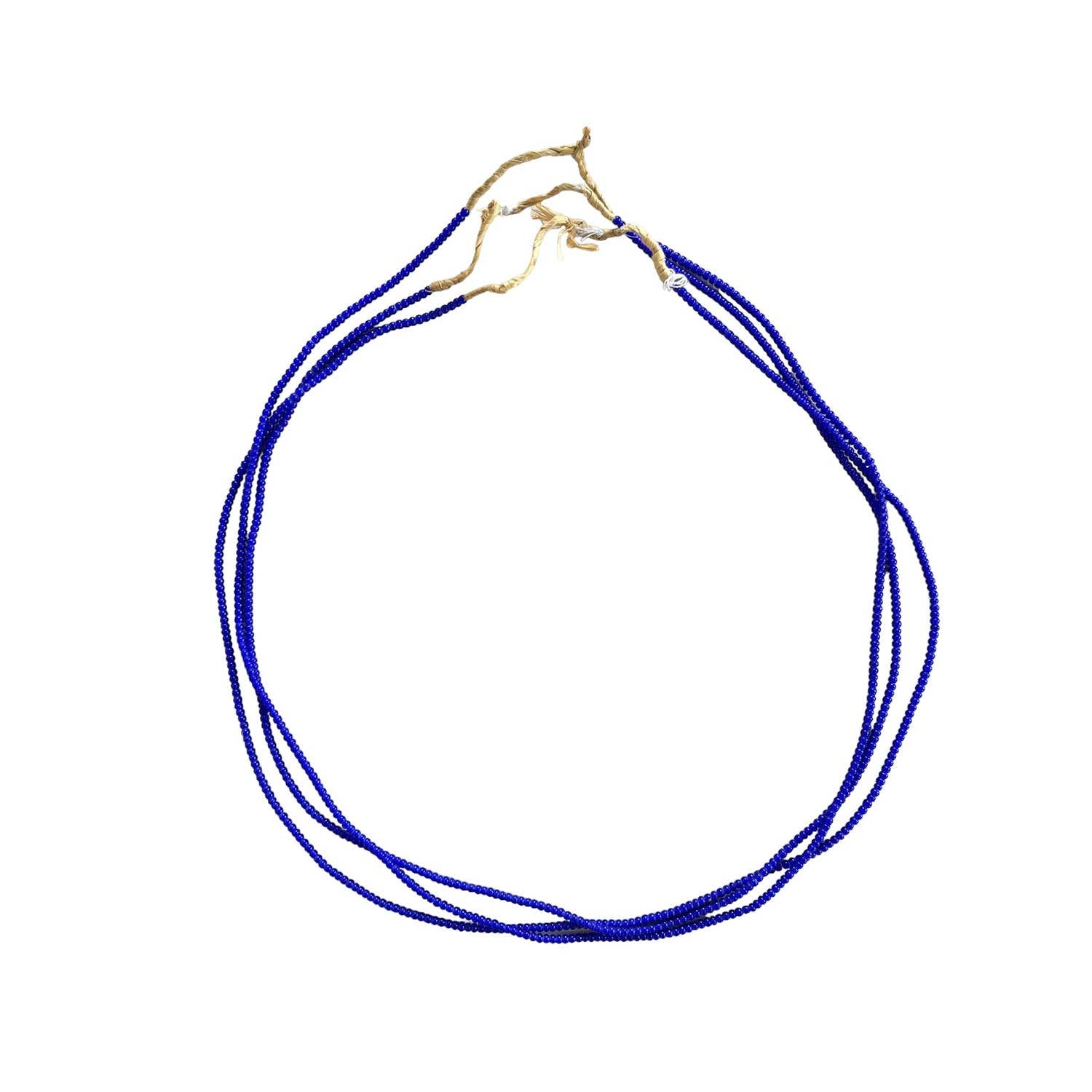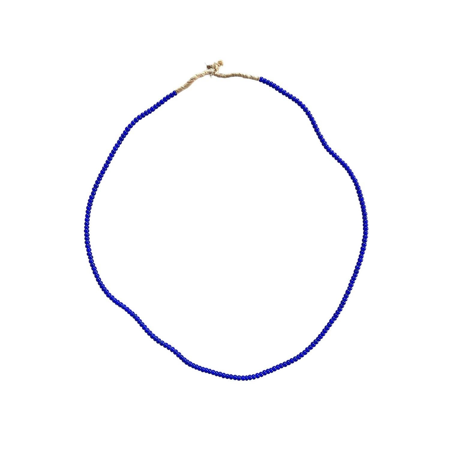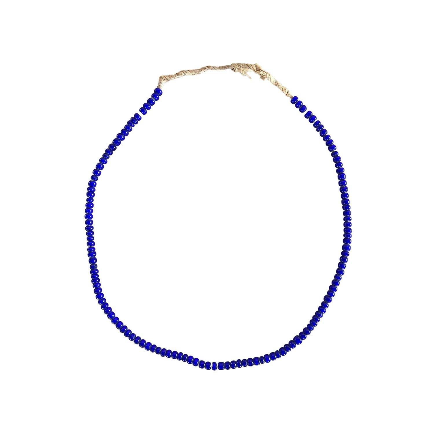 Produced in Ghana, the White Heart Glass Bead strands are crafted from a process originally developed by the French and Czech for trade. The name "White Heart" was given to this collection of beads because the core bead is an opaque white glass coated with translucent layers of colored glass. The result is a captivating play of light passing through the beads. The White Heart Glass Bead Blue is striking Cerulean Blue. Available in strands of Small, Medium, and Large size beads.